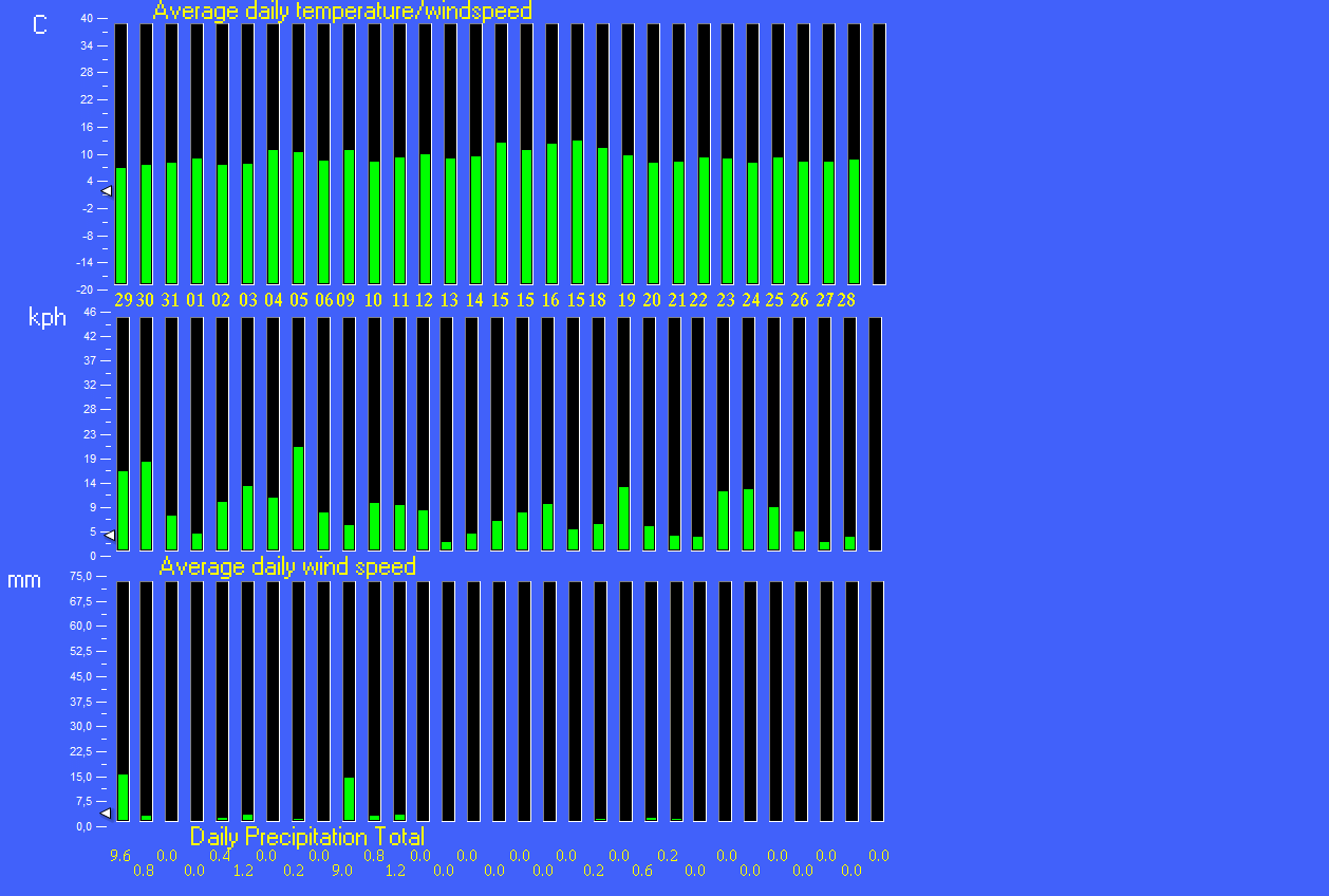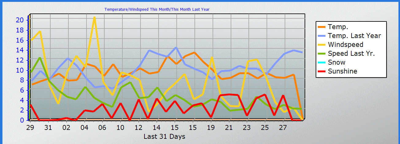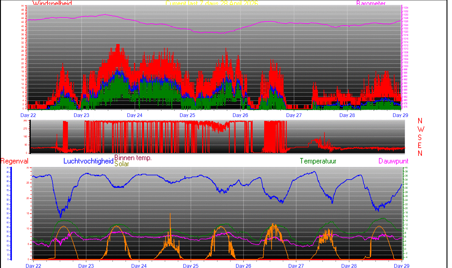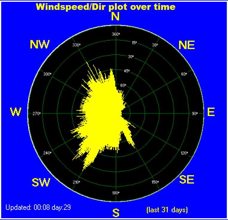 Max windsnelheid = 40.7 kmh van 198°(SSW) op 05 Tijdstip 03:58